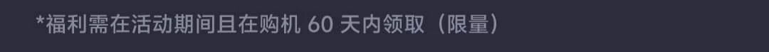 【领取时间】该福利需要在活动期间且购机60天内领取;