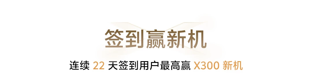 活动期间,用户可每天进入vivo官方商城的vivo X300系列新品预约活动页面,参与每日签到可获得50积分,活动结束后,将从活动期间连续签到(未断签)用户中,随机抽取5名幸运用户获得X300手机奖品一份(奖品颜色版本随机发放,价值以上市为准)。