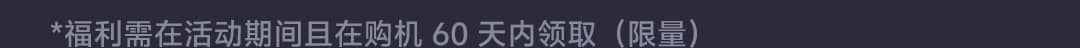 【领取时间】福利需在活动期间且在购机60天内领取;