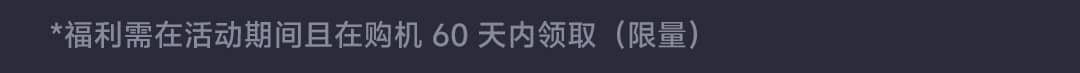 【领取时间】该福利需在活动期间且在购机60天内领取;