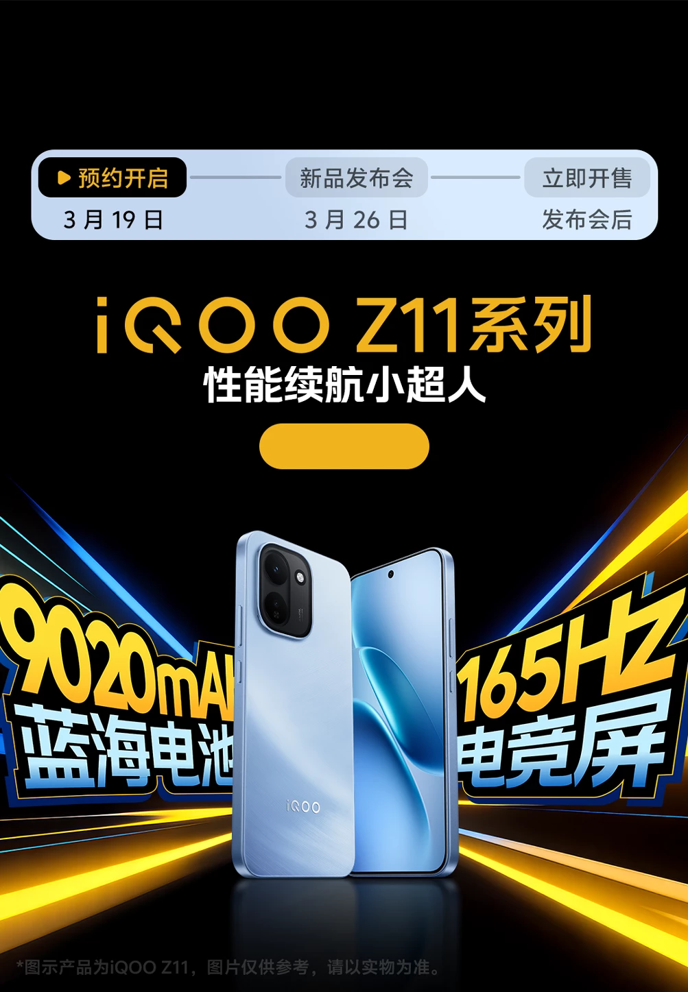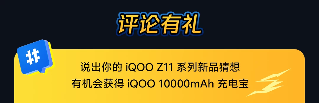 活动玩法:即日起至2026年3月26日24点前,在vivo商城iQOO Z11系列新品预约活动页面聊一聊您对iQOO Z11系列新品的想法,有机会获得iQOO充电宝。